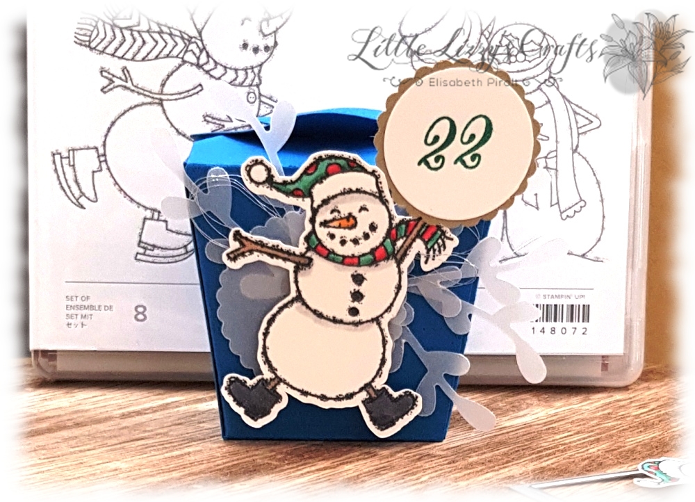 Heute habe ich süße kleine Boxen mit den Takeout Thinlits und dem Stempelset Spirited Snowmen für euch.