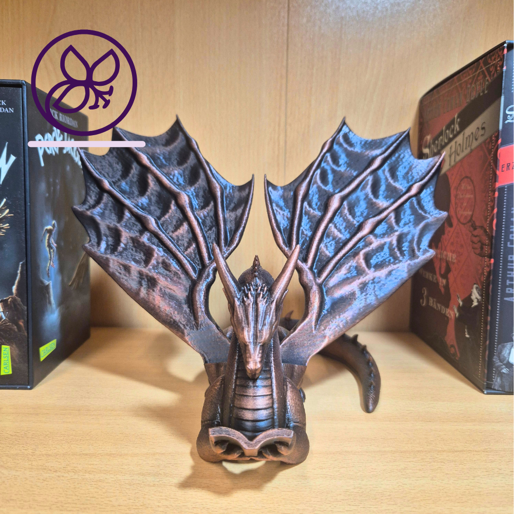 Tauche ein in die Welt der Fantasie – mit Aegaron, dem Drachen, der nicht nur Bücher hält, sondern Geschichten beschützt. Ob als Tabletständer, Buchdisplay oder schlicht als dekoratives Meisterwerk: Dieser detailverliebte Drache zieht alle Blicke auf sich und verleiht deinem Regal epische Ausstrahlung.